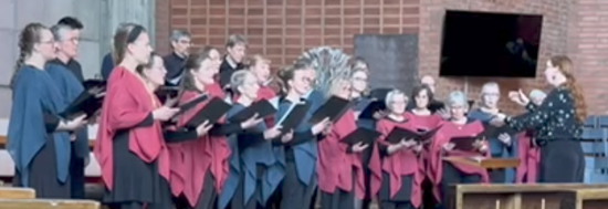 Cantionale laulamassa Tuomiokirkon urkuparvella urkuri Esa Toivolan säestyksellä (yllä) ja alttarin edessä (alla) 40-vuotisjuhlakonsertissa 7.5.2023.
