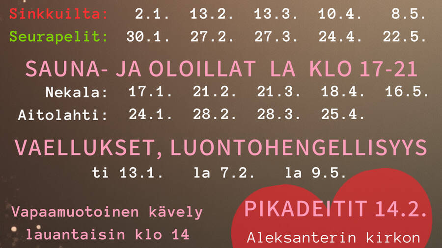 30.1. seurapeli-ilta sinkuille, ei tarjoiluja muuten kuin teetä ja kahvia